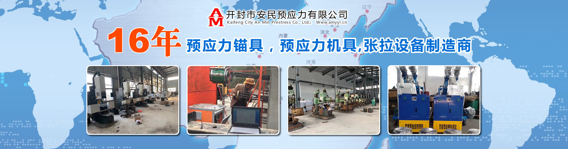 開(kāi)封市安民預(yù)應(yīng)力有限公司KAIFENG CITY ANMIN PRESTRESSED CO LTD. 開(kāi)封市安民預(yù)應(yīng)力有限公司是研制、生產(chǎn)、銷(xiāo)售各種預(yù)應(yīng)力產(chǎn)品及預(yù)應(yīng)力施工的專(zhuān)業(yè)廠家。公司主導(dǎo)產(chǎn)品為AM、BM系列錨具,鐓頭錨、弗氏錨、P型錨、精軋螺紋鋼錨具及配套各系列干 斤頂、高壓油泵、灰漿泵、攪拌機(jī)、制管機(jī).智能張拉.智能壓漿等機(jī)具產(chǎn)品。公司產(chǎn)品已達(dá)到GB/14370-2007標(biāo)準(zhǔn)及國(guó)際預(yù)應(yīng)力混凝土協(xié)會(huì)《FIP1993》標(biāo)準(zhǔn)。 公司設(shè)備**,技術(shù)力量雄厚。原材料從采購(gòu)、生產(chǎn)、檢驗(yàn)和服務(wù)的全過(guò)程中,均在國(guó)際標(biāo)準(zhǔn)質(zhì)量體...